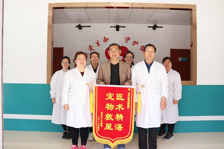 4月15日,市民于先生將寫有“醫(yī)術(shù)精湛 寵物救星”的錦旗,交到了鳴康動(dòng)物醫(yī)院寵物醫(yī)生們的手中,用以感謝他們成功救治了自己的多條愛犬。