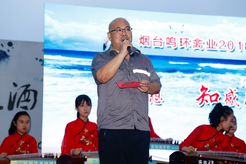 晚會(huì)在合作社理事長(zhǎng)宋永的致辭中拉開帷幕。他強(qiáng)調(diào),其一表示感謝:2018年市場(chǎng)經(jīng)濟(jì)持續(xù)低迷,但鳴環(huán)還能朝氣蓬勃的發(fā)展,離不開用戶們、團(tuán)隊(duì)們、親友們的鼎力支持;其二做出表態(tài):雖然在生豬養(yǎng)殖的道路上仍然困難重重,但鳴環(huán)一定會(huì)堅(jiān)持,并不斷轉(zhuǎn)型升級(jí),盡力壯大牟平區(qū)生豬養(yǎng)殖事業(yè)。并著重強(qiáng)調(diào)晚會(huì)主題含義:“一個(gè)有夢(mèng)想,懂感恩的團(tuán)隊(duì),他們一定會(huì)有一個(gè)美好的未來”。