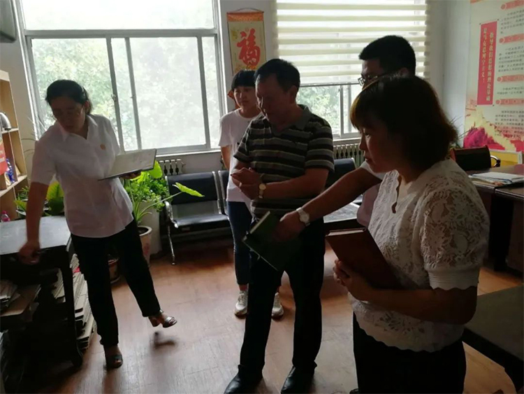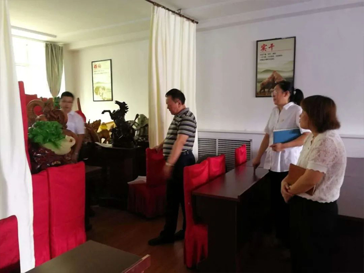 在辦公樓,孫惠軍總經(jīng)理率領(lǐng)各部門負(fù)責(zé)人對各個(gè)房間的物品擺放、衛(wèi)生管理等進(jìn)行現(xiàn)場勘查。