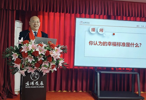 隨后,鳴環(huán)發(fā)展董事長宋永向與會人員分享了《關(guān)于幸福的探討》。董事長首先指出,鳴環(huán)成為幸福企業(yè)的標準是實現(xiàn)“員工有幸福,客戶有價值,行業(yè)有促進,社會有貢獻”的企業(yè)愿景。要緊緊圍繞客戶價值、戰(zhàn)略落地、組織效能、五個堅持、產(chǎn)品品質(zhì)等五個方面打造幸福企業(yè)。