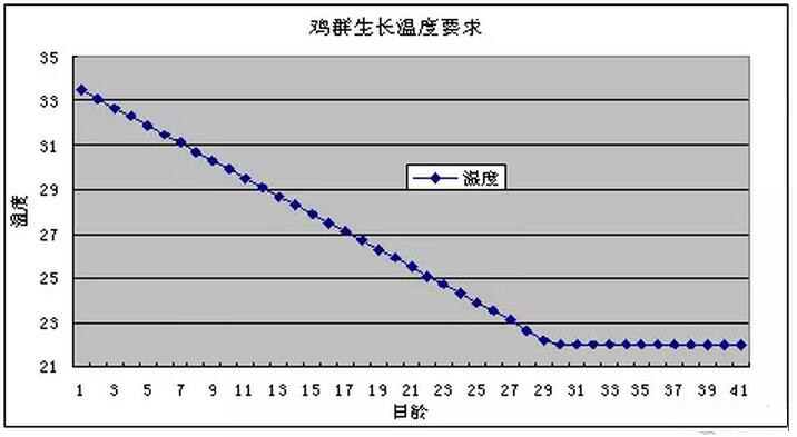 當(dāng)然,在有風(fēng)速的情況下,雞只的感覺溫度是有變化的。縱向通風(fēng)適用于夏天高溫季節(jié),它產(chǎn)生的風(fēng)冷效應(yīng)能使雞只的感覺溫度比實際溫度下降6-8度,如下圖。在氣候多變的季節(jié),當(dāng)白天溫度達到27-28C或以上時雞群通常需要進行縱向通風(fēng)來降溫,但是隨著下午或晚上外界溫度下降到21度或者更低時,繼續(xù)采用縱向通風(fēng)會對雞群造成不良影響。炎熱季節(jié)縱向通風(fēng)產(chǎn)生的風(fēng)冷效應(yīng)是我們所需要的,但是在外界溫度比較低的情況下因繼續(xù)采用縱向通風(fēng)而嚴重損害雞群生產(chǎn)性能的情況也是必須要避免的。
