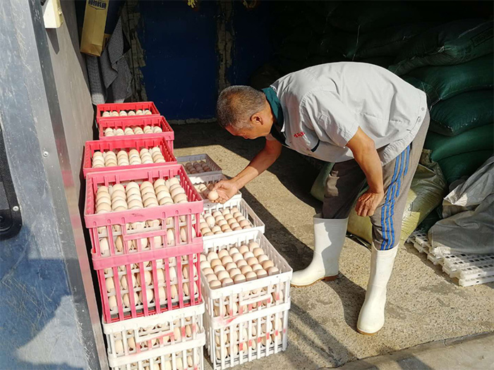 姜文明十分注重自己舍內(nèi)的生物安全和細(xì)節(jié)管理,所有物品全部歸類擺放, 物料間的蛋箱、蛋托清理后擺放的井然有序。在進(jìn)入雞舍時(shí),姜文明堅(jiān)決做到洗手、消毒,穿工作鞋和工作服,攜帶的工具在進(jìn)入雞舍之前更是要進(jìn)行嚴(yán)格的消毒程序。在完成好自己的本職工作之余,他在自己雞舍旁開(kāi)辟了一個(gè)小菜園,種上了西瓜和西紅柿。
