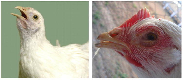 圖1:發(fā)生傳喉后呼吸困難和結(jié)膜粘連的雞(來源:Vasudevan Gowthaman)