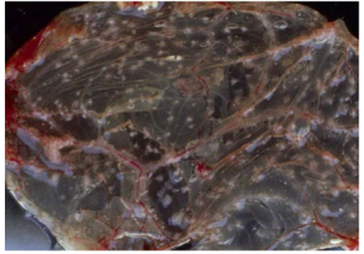 圖2:氣管內(nèi)的帶血黏液和干酪物(來源:Walter Fuchs)